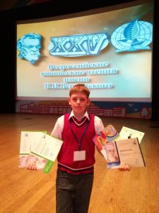 С 8 по 13 апреля 2018 года в Москве проходил один из самых престижных конкурсов исследовательских работ школьников «XXV Всероссийские юношеские чтения имени В.И.Вернадского». Череповец на конкурсе представлял ученик 5 «А» класса МБОУ «СОШ № 17» Фоменко Андрей. На конкурс имени Вернадского он представил работу «Тайны деревни Опоки. Пермский период», под руководством учителя истории и обществознания МБОУ «СОШ №17», кандидата филологических наук Шалашова Евгения Васильевича. Работа была высоко оценена конкурсной комиссией и Андрей стал победителем Всероссийской конференции «Тропой открытий В.И.Вернадского», так же Андрей был награжден грамотой в номинации «Лучшие иллюстрационные материалы». В рамках чтений им.В.И.Вернадского проходил конкурс художественного мастерства. Андрей Фоменко представил стихотворение, которое специально для конкурса сочинила его учитель французского языка Ямковенко Елена Евгеньевна. Художественный талант Андрея так же высоко оценили члены жюри и признали череповчанина победителем Конкурса художественного творчества в номинации «Художественное слово». Подробнее… Поздравляем Андрея и желаем новых творческих побед!